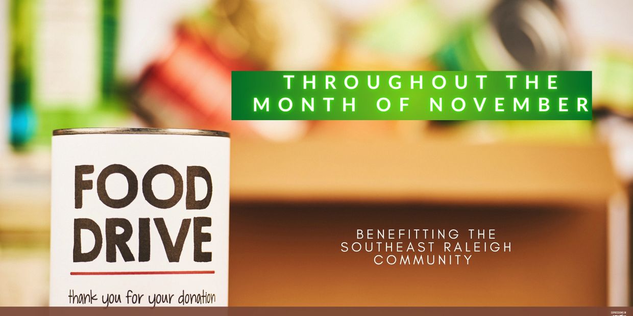 Expressions in Rhythm Studio is proud to host a Community Food Drive for the entire month of November! We are collecting non-perishable items to support families in need in Southeast Raleigh.